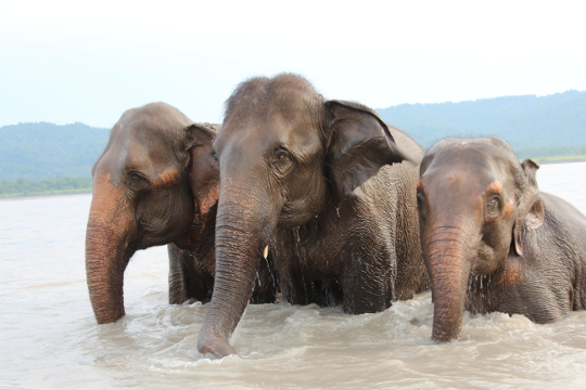In de late namiddag volg ik de olifanten als ze naar de rivier lopen om af te koelen. Sandra Kali, een relatief jonge olifant, loopt recht op het water af en al snel is enkel haar slurf en een stukje rug te zien. Ze trompettert en duwt speels tegen haar moeder Hira Kali en vriendin Saraswati Kali, die haar enthousiast volgen. Dat is wanneer ik me herinner wat naturalist Shambhu Mahato mij deze ochtend vertelde: ‘Als we stoppen met het uitoefenen van dwang, worden olifanten weer kind. Gelukkig en speels, gehoorzaam en vertrouwend.”