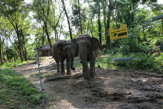 Buckley, die eerder de Nepalese overheid hielp om de olifanten in het Chitwan Nationaal Park te ontketenen, ontwierp vijf omheiningen met hekken die op zonne-energie werken. Elke leefgebied heeft natuurlijke elementen zoals struiken, bomen en hoogteverschillen. Vanuit een safarikamp met zes comfortabele tenten en een eetzaal kunnen gasten de olifanten 24 uur per dag te observeren.